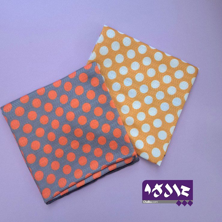 روسری کوتاه نارنجی مدل خالخالی ابعاد:قواره ۷۰ دور دست دوز