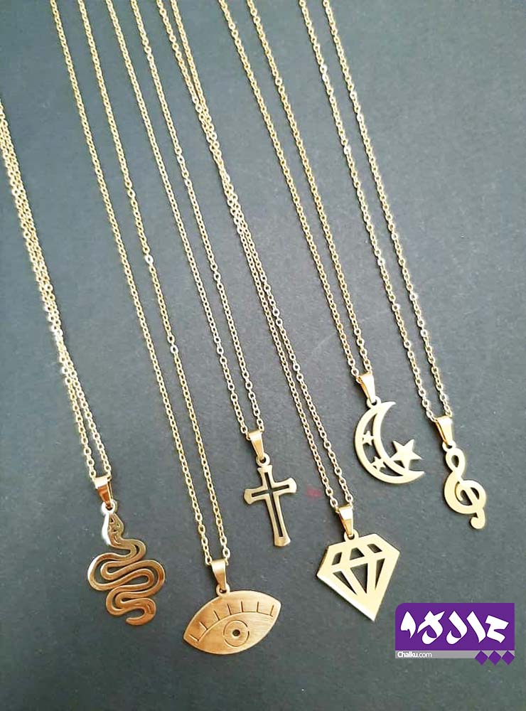 این نیم ست استیل طلایی رنگ ثابت است و همراه با یک جفت گوشواره به صورت نیم ست ارسال خواهد شد.